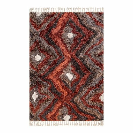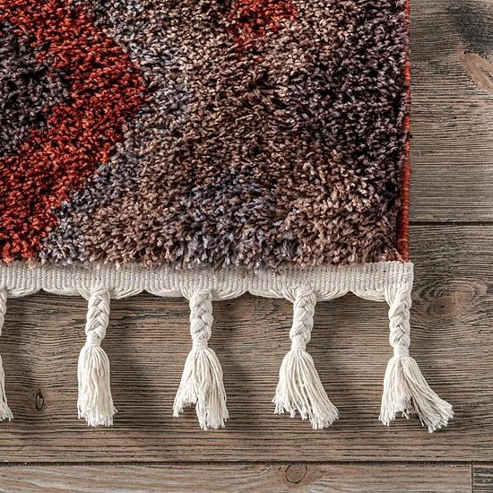 This Alexia Abstract Diamond Shaggy Tassel area rug from nuLOOM will add a rugged red look to your floor.