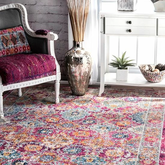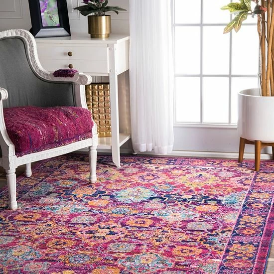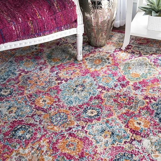 Add an unexpected burst of color to your home with this nuLOOM Bodrum Leilani Persian Framed Floral rug.