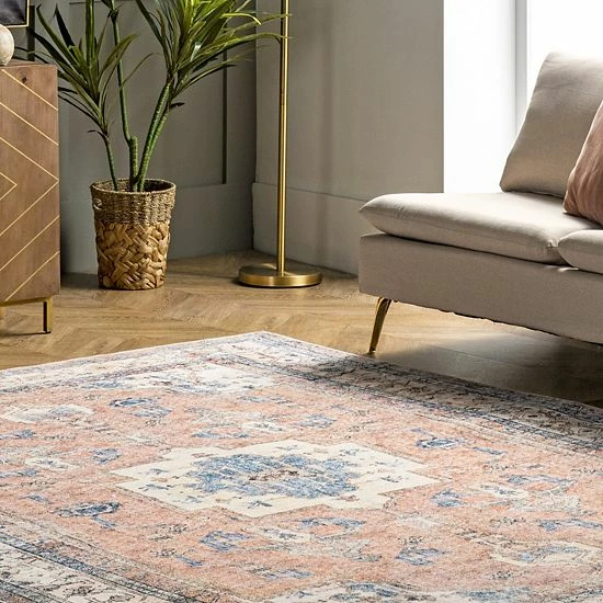 When your room needs a necessary makeover, look no further than this nuLOOM Eleanor Machine Washable Distressed Medallion Area Rug.