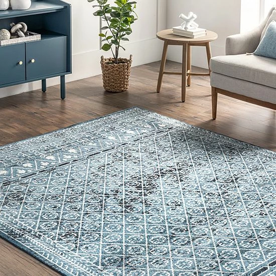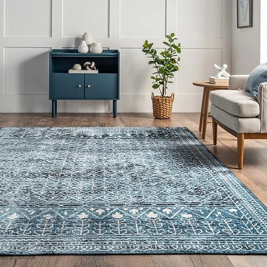 Give any floor in your home a needed makeover with this nuLOOM Prestyn Machine Washable Faded Tribal Trellis Area Rug.