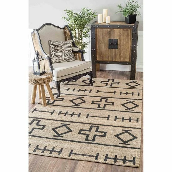 Get a natural look and feel with this nuLOOM Sukkot Barry Geometric Jute Blend rug. In natural.