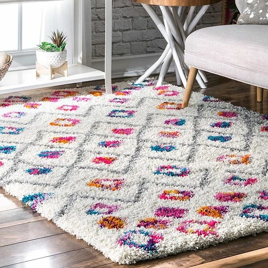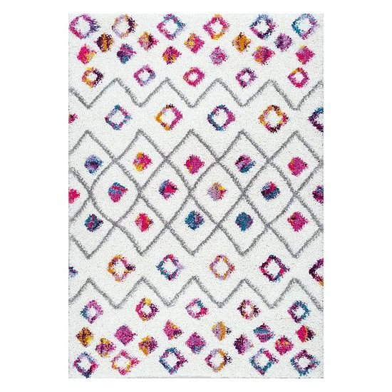 This nuLOOM Tatyana Moroccan Diamond Geometric Shag rug is sure to get noticed. In pink.