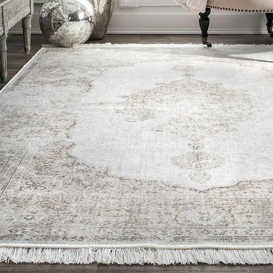 Your guests are sure to be impressed by this nuLOOM Vintage Medallion Cantrell Fringe rug. In ivory.