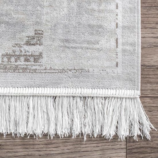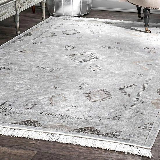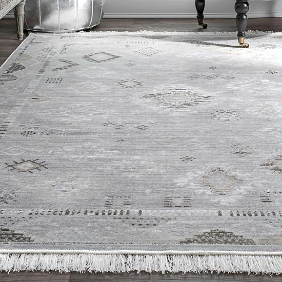 Try something new with this nuLOOM Vintage Tribal Maida Fringe rug. In silver tone.