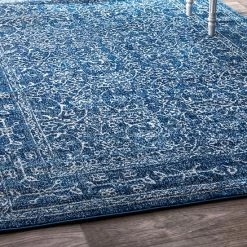 NuLOOM Vintage Waddell Framed Floral Rug Dark Blue